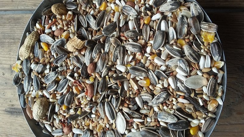 Složení: Slunečnice žíhaná velká, slunečnice bílá, kardi, pšenice, kukuřice, paderýže, oves nahý, pohanka, burák neloupaný, dari, čirok, burák loupaný, lisováný hrášek, dýně, mrkev.